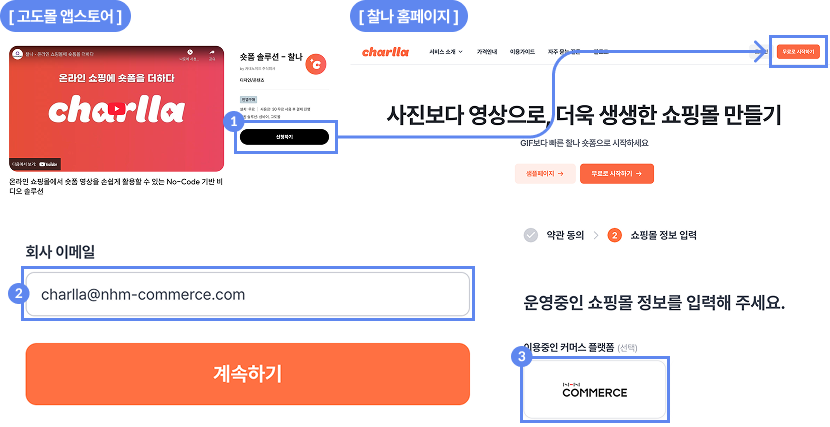 3. 약관 동의 후, 쇼핑몰 정보 입력 페이지에서 이용 중인 커머스 쇼핑몰을 ‘NHN commerce’로 선택하여 가입을 완료합니다.
